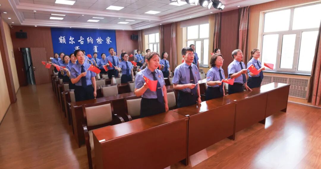 清晨,伴随着庄严的国歌声,五星红旗在额尔古纳市检察院院内冉冉升起。全体检察人员肃穆而立,向国旗行注目礼,在激昂的旋律中,对祖国的热爱与忠诚在心中升腾,也为此次“七一”活动拉开了庄重而热烈的序幕。